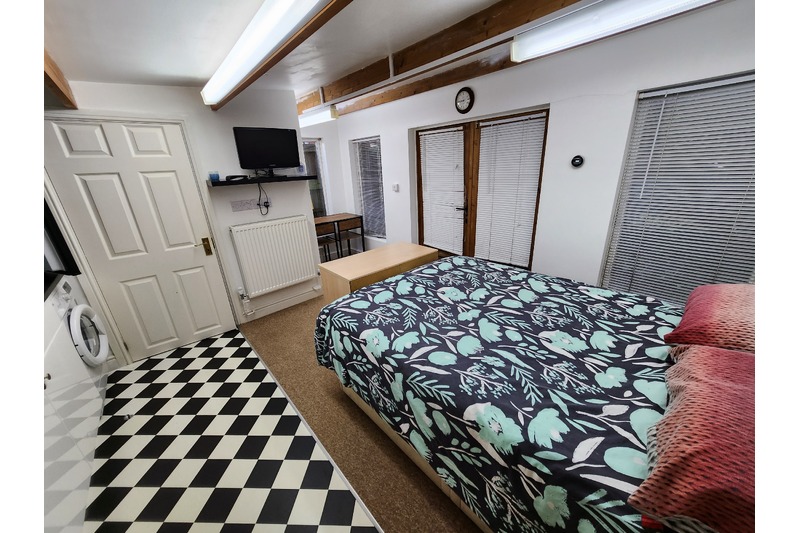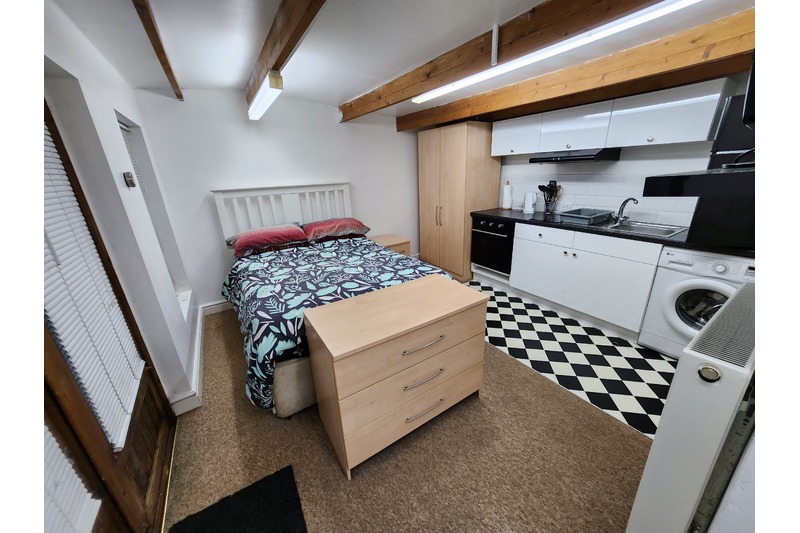 Detached cabin with open plan kitchen/lounge/bedroom, separate shower room. There is ample parking available and a garden. The property is very conveniently located for the HP pick up point.