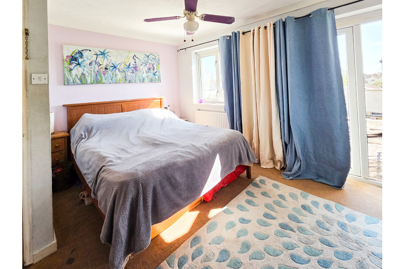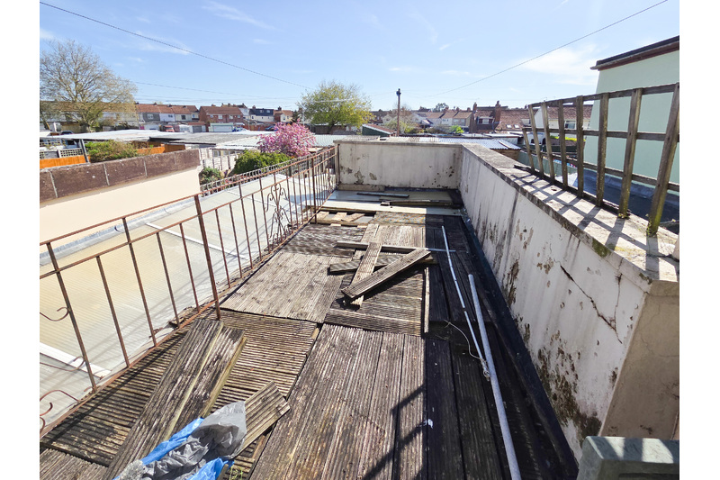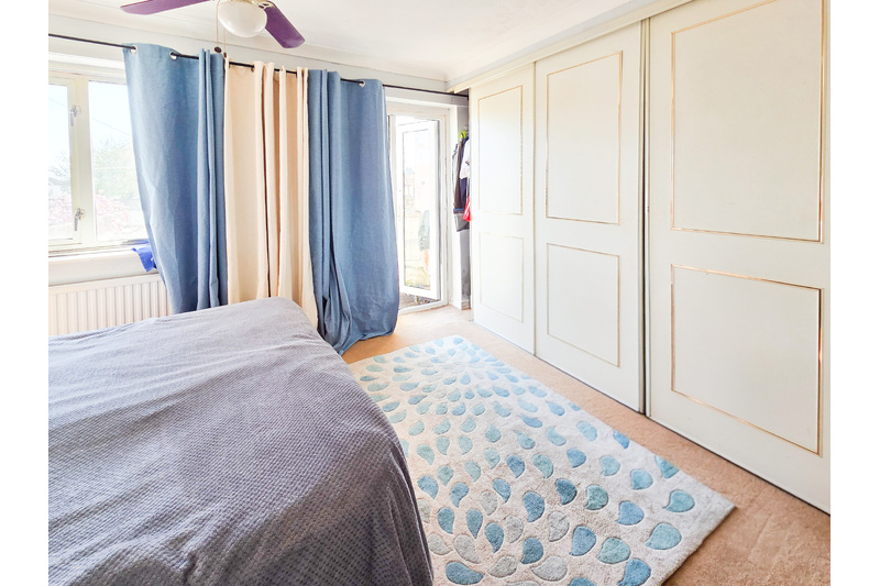 Bedroom 1: 3.485 x 3.621 (11'05" x 11'10") L-shaped. Double glazed window to rear aspect, radiator, built in wardrobes and carpet as fitted. French doors leading onto the flat roof which has fencing and decking.
