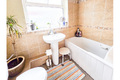 Bathroom: PVCu double glazed window to rear aspect, fitted with a white suite comprising low level WC, wash hand basin, bath with electric shower, radiator, and vinyl flooring.
