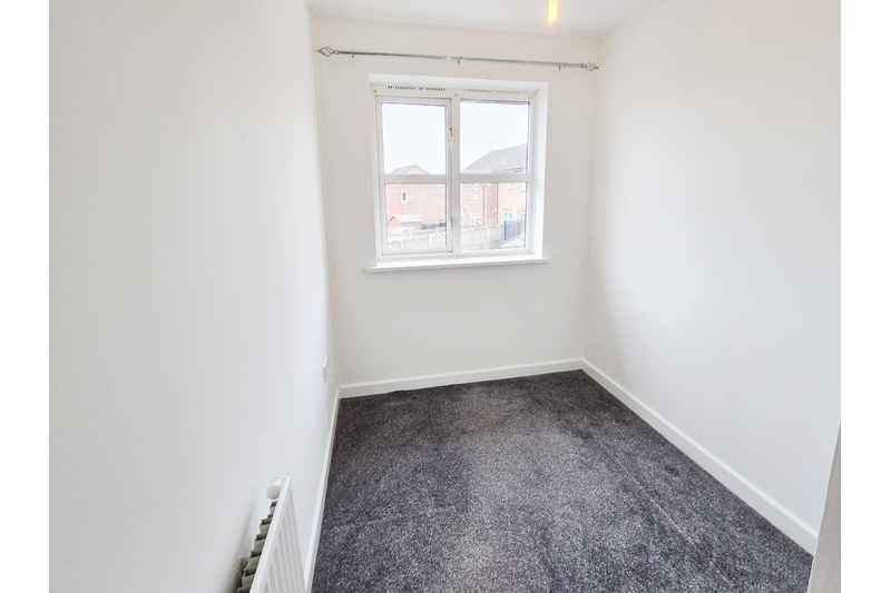 Bedroom 3: 06’07” (2m) Min 09’09” 2.97m Max x 06’01” (1.85m) PVCu double glazed window to front aspect, radiator and carpet as fitted.
