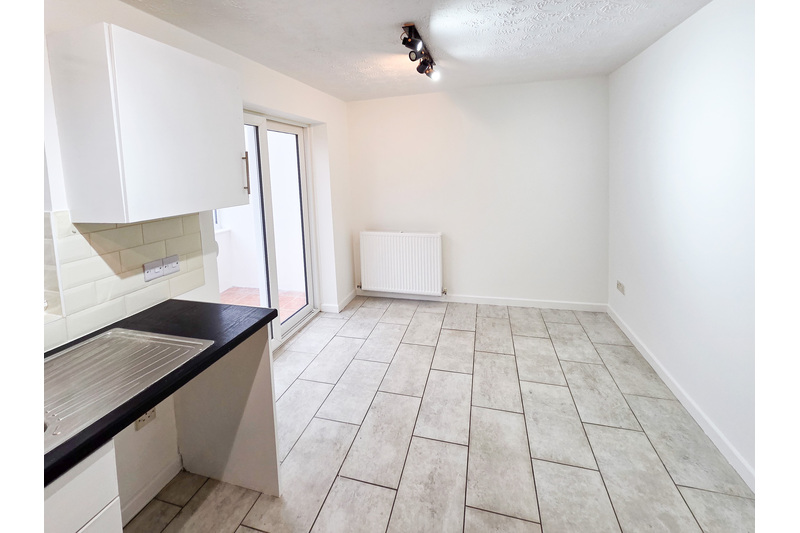 Kitchen/Diner: 08’06” x 14’08” (2.6m x 4.47m) PVCu double glazed window to rear aspect, range of wall and base units with laminated work surfaces over. Inset 1 ½ bowl sink and drainer. Built in oven with hob and extractor over, wall mounted boiler, space and plumbing for washing machine, and radiator. Double glazed sliding patio doors opening into: -