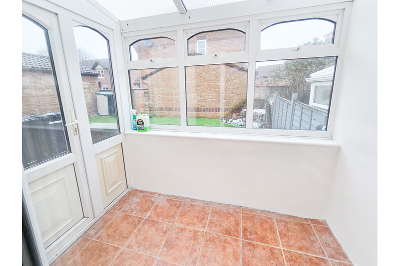 PVCu Conservatory: 07’05” x 04’07” (2.26m x 1.4m) Cavity wall construction with PVCu windows and polycarbonate roof and door allowing access to the rear garden.