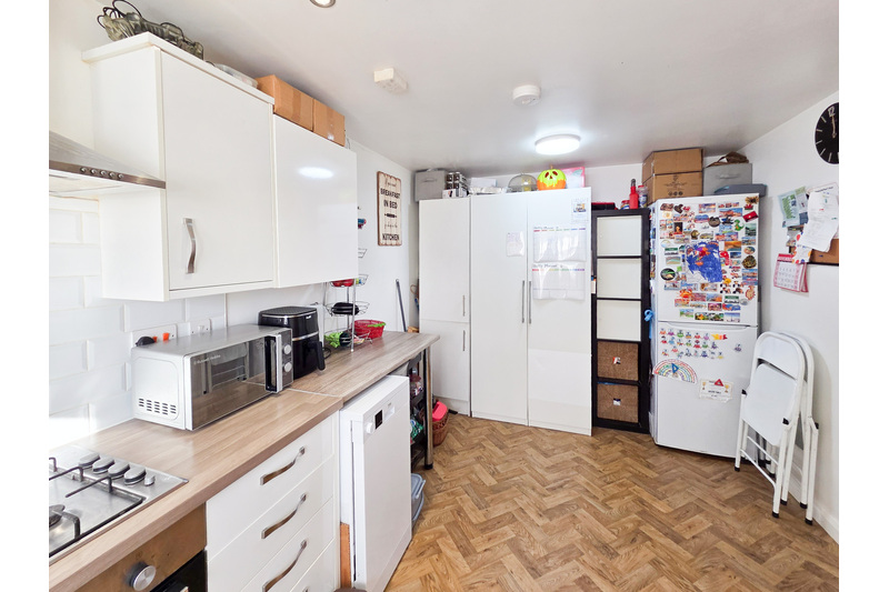 Kitchen/Diner: 16' 01'' x 08' 10'' (4.9m x 2.7m). PVCu double glazed window to front aspect. Contemporary range of units with built-in cooking appliances, fridge/freezer and washing machine, ample space for table and chairs.